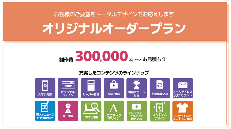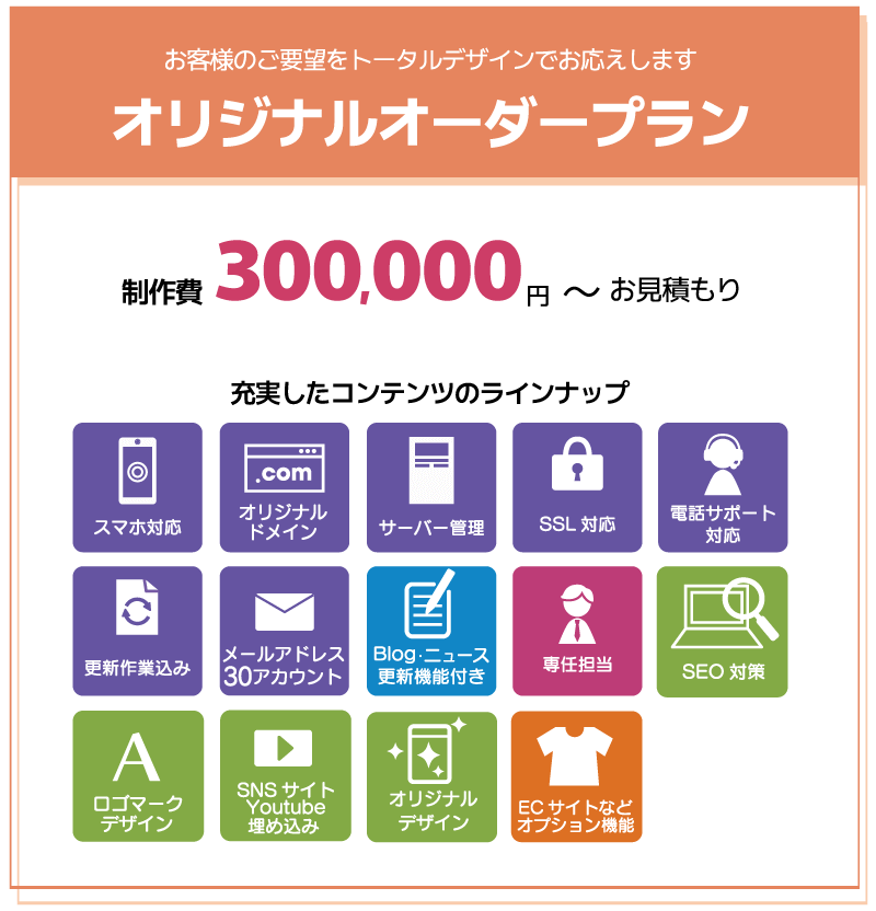 ※ドメインおよびサーバーレンタル料は別途となります。※表記の料金はすべて消費税別途です。